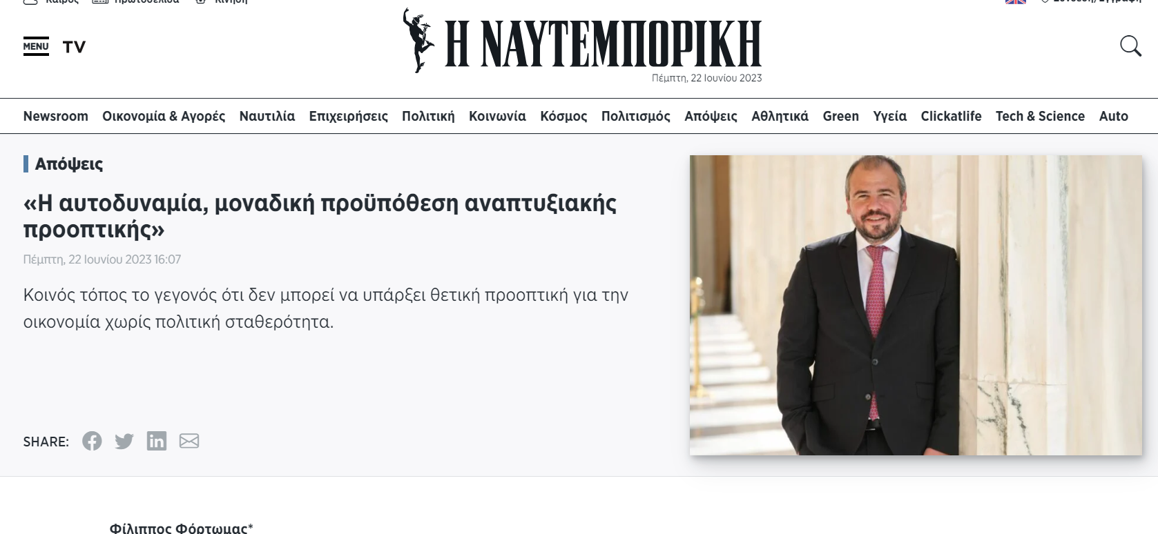 Φ. Φόρτωμας στη Ναυτεμπορική: «Η αυτοδυναμία, μοναδική προϋπόθεση αναπτυξιακής προοπτικής»