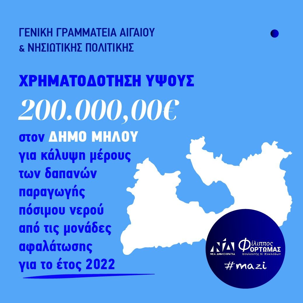 Συγχαρητήρια Φίλιππου Φόρτωμα για την χρηματοδότηση του Δήμου Μήλου