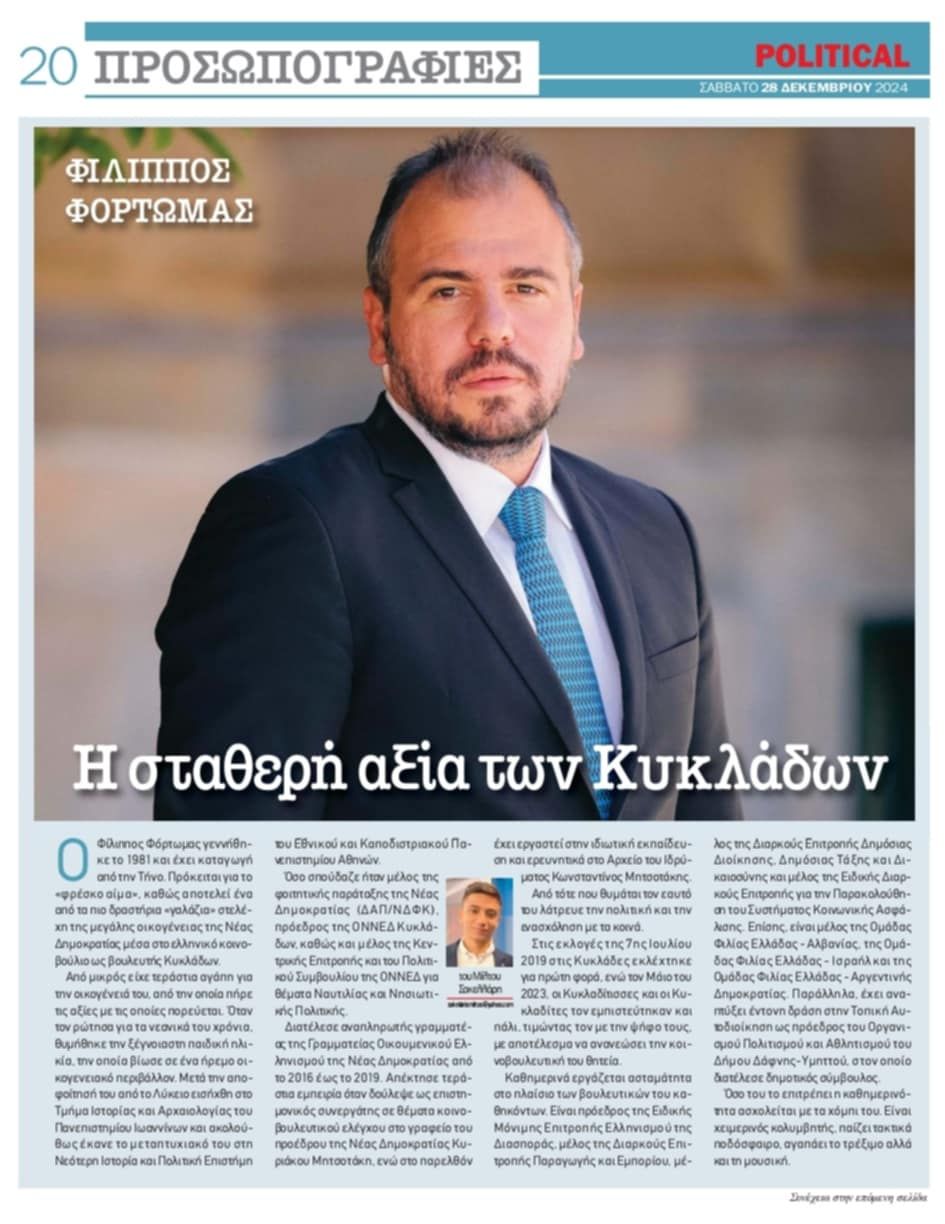 Φίλιππος Φόρτωμας: Η σταθερή αξία των Κυκλάδων – Αφιέρωμα της εφημερίδας Political