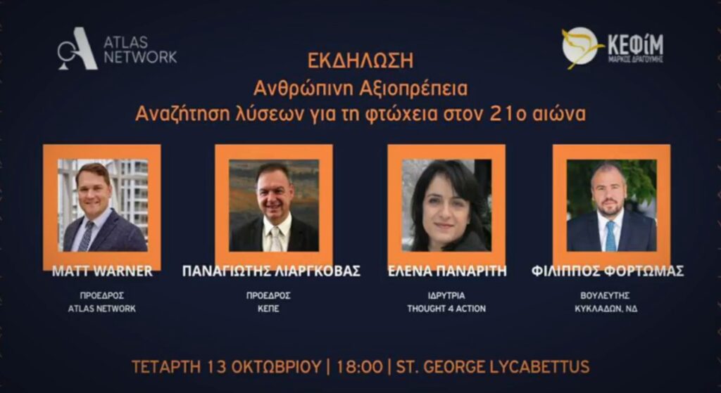 Ο Φίλιππος Φόρτωμας ομιλητής στο Κέντρο Φιλελεύθερων Μελετών με θέμα την “Ανθρώπινη Αξιοπρέπεια”