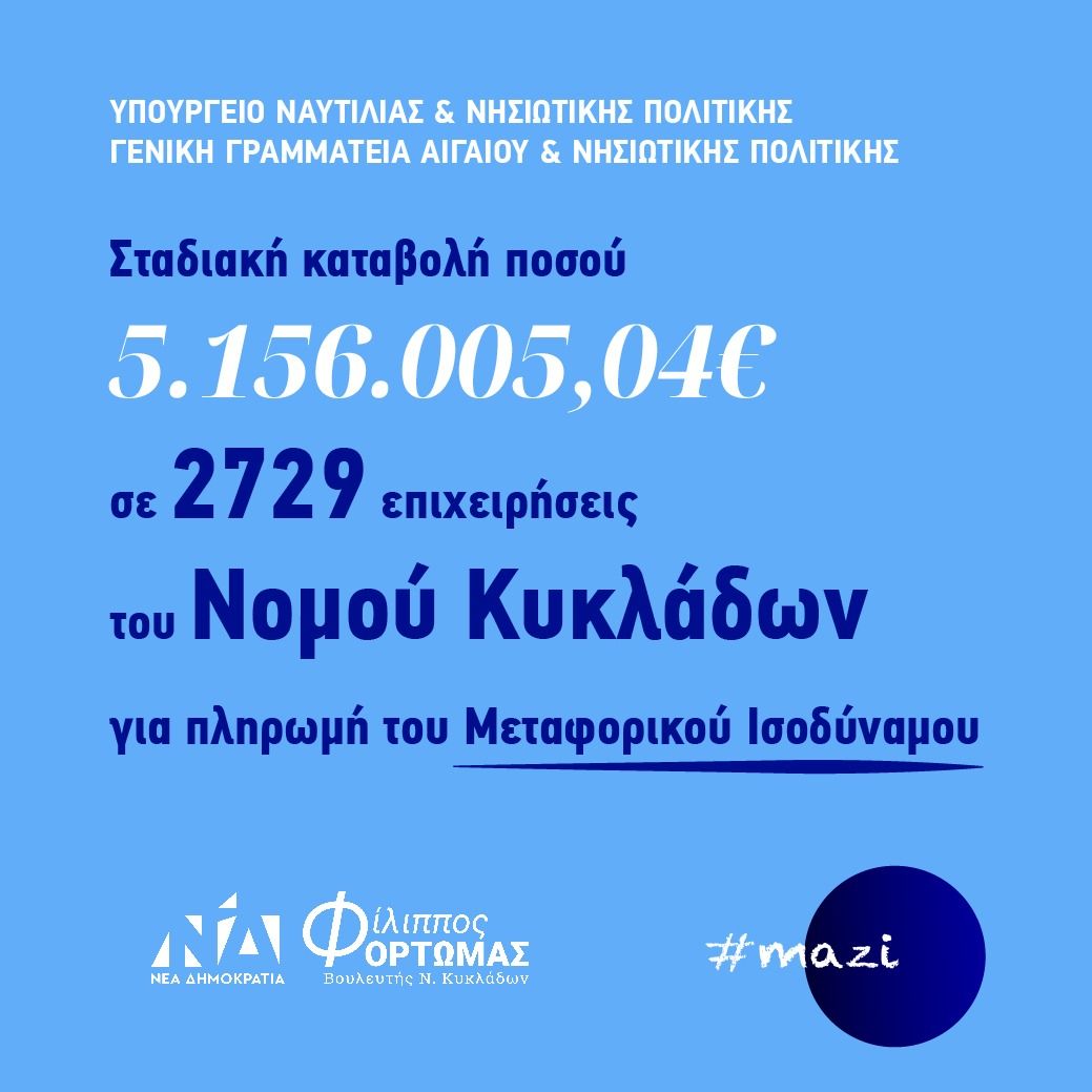 Δήλωση Φίλιππου Φόρτωμα για την καταβολή του Μεταφορικού Ισοδυνάμου, σε πολίτες και επιχειρήσεις του νομού Κυκλάδων Written on April 12, 2023.