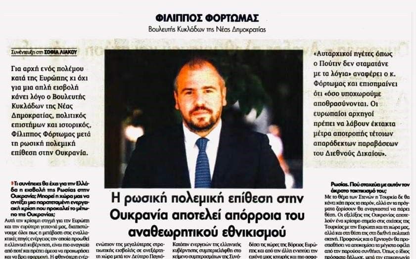 Φ. Φόρτωμας στην Κυριακάτικη Kontra News: “Η επίθεση στην Ουκρανία αποτελεί απόρροια του αναθεωρητικού εθνικισμού” Written on February 27, 2022.